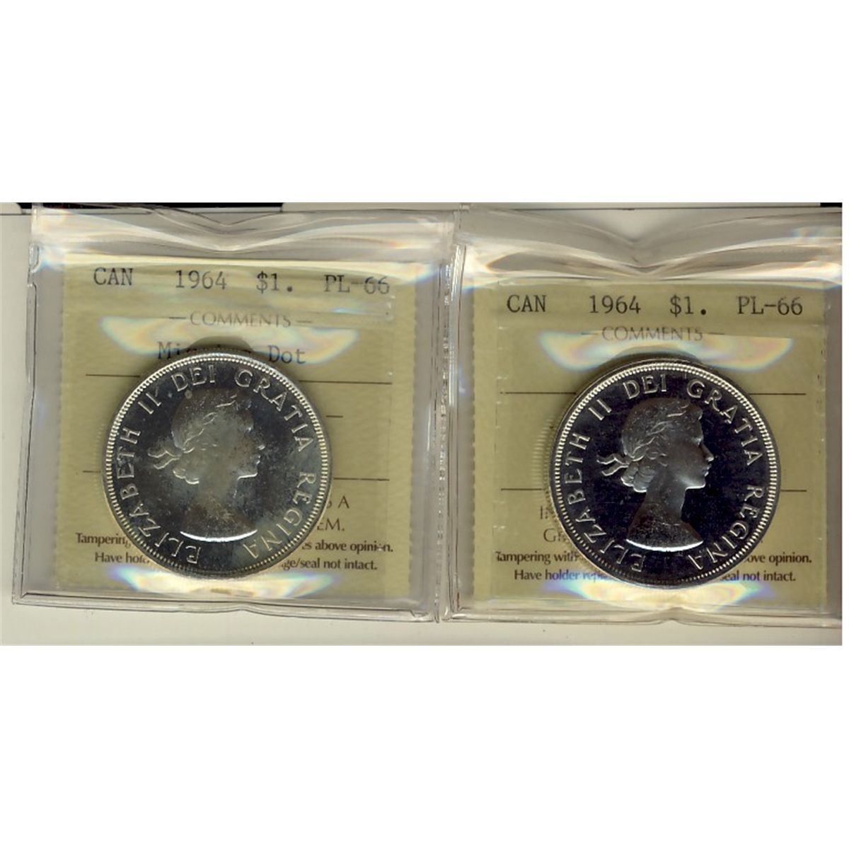 1964 & 1964 Missing Dot $1 ICCS PL66. Lot of 2 coins.