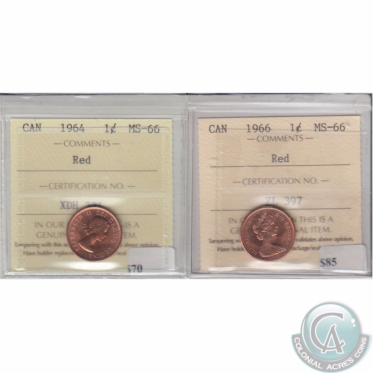 1964 & 1966 Canada 1-cent Both ICCS Certified MS-66 (2pcs)