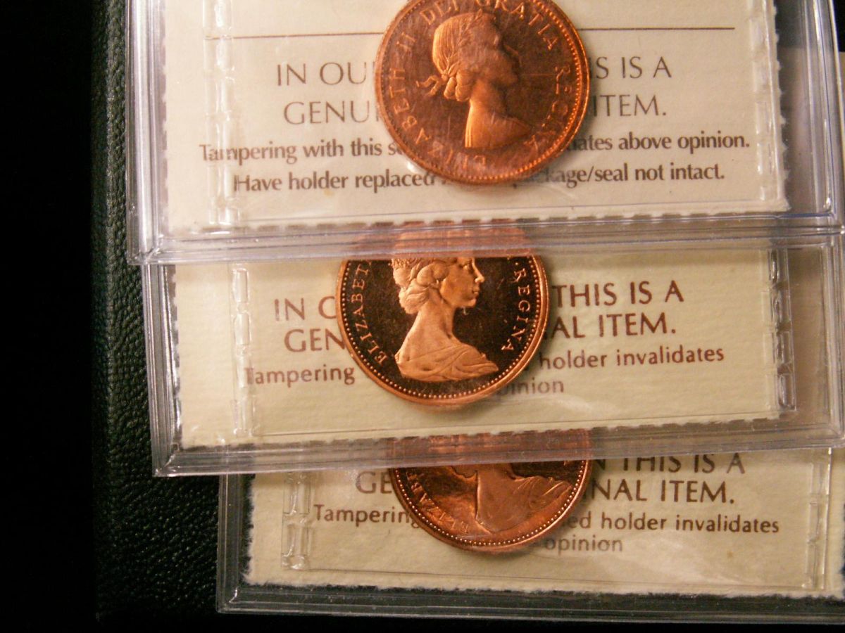 1964, 1969 & 1971 1¢ ICCS PL65RD ULTRA HEAVY CAMEO. Lot of 3 coins.