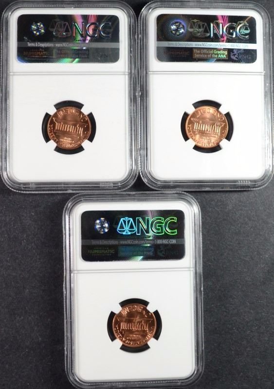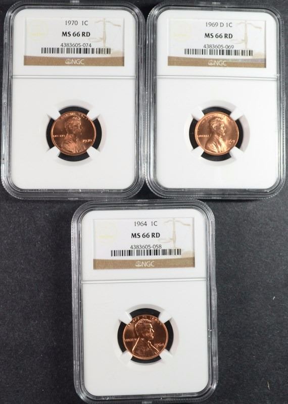 1964, 1969-D & 1970 LINCOLN CENTS, NGC MS-66 RED