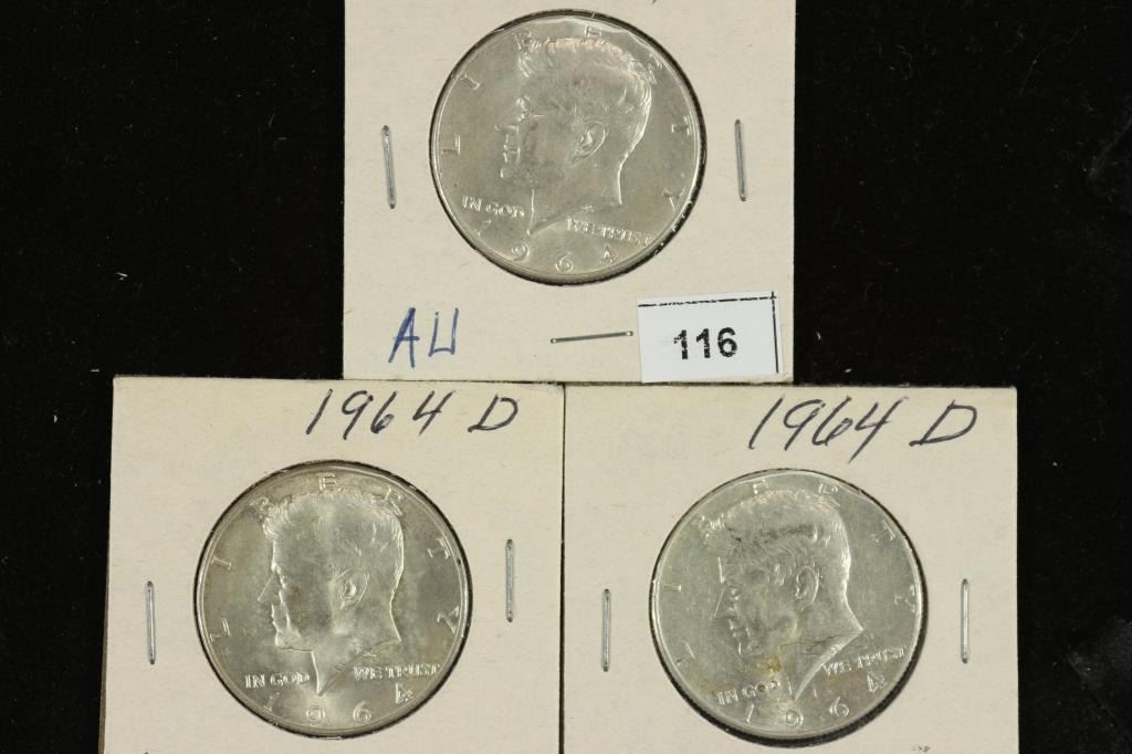 1964 & 2-1964-D 90% SILVER KENNEDY HALF DOLLARS