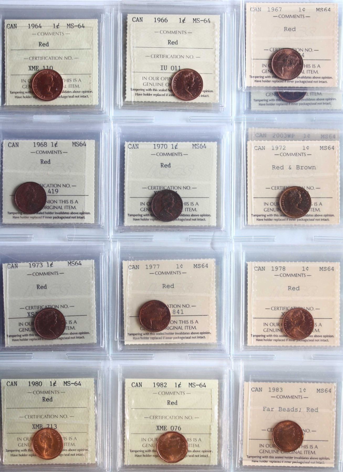 1964-2012 1¢ All 22 coins ICCS Very Choice Mint State-64 Red. Includes some better and interesting varieties.