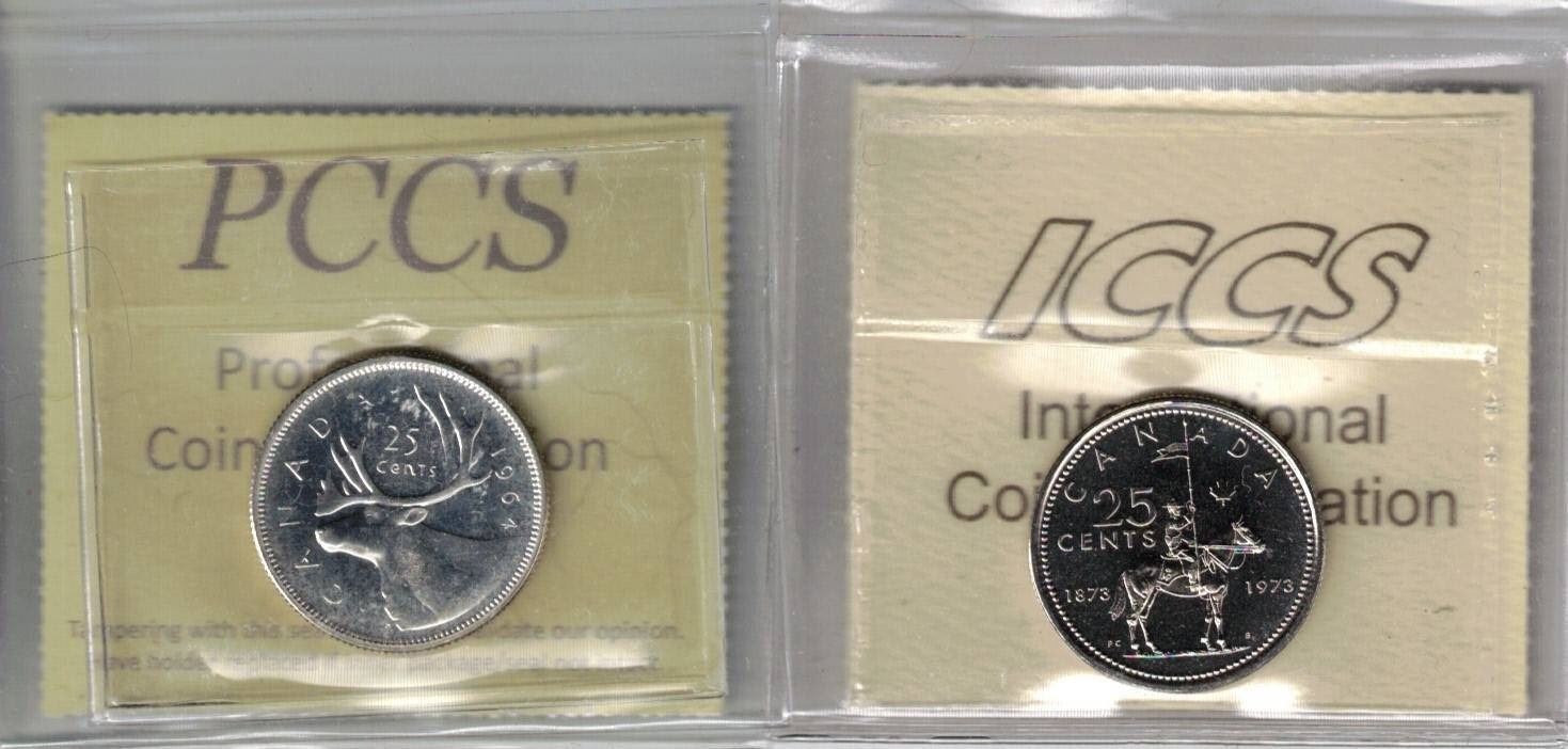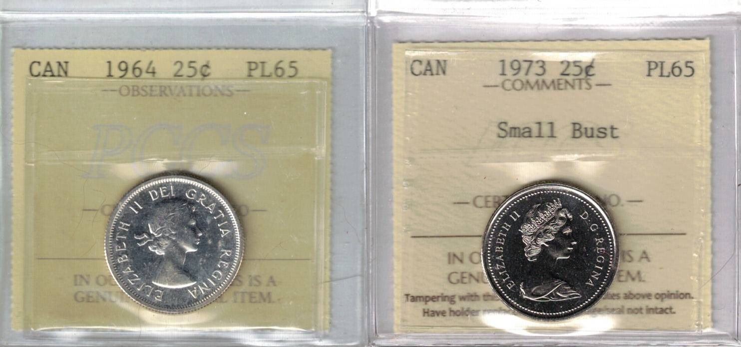 1964 25¢ & 1973 25¢ Small Bust Both PL65 2pcs, PCCS (Professional Coin Certification System)
