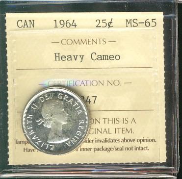 1964 25¢ ICCS MS65 Hvy Cameo.