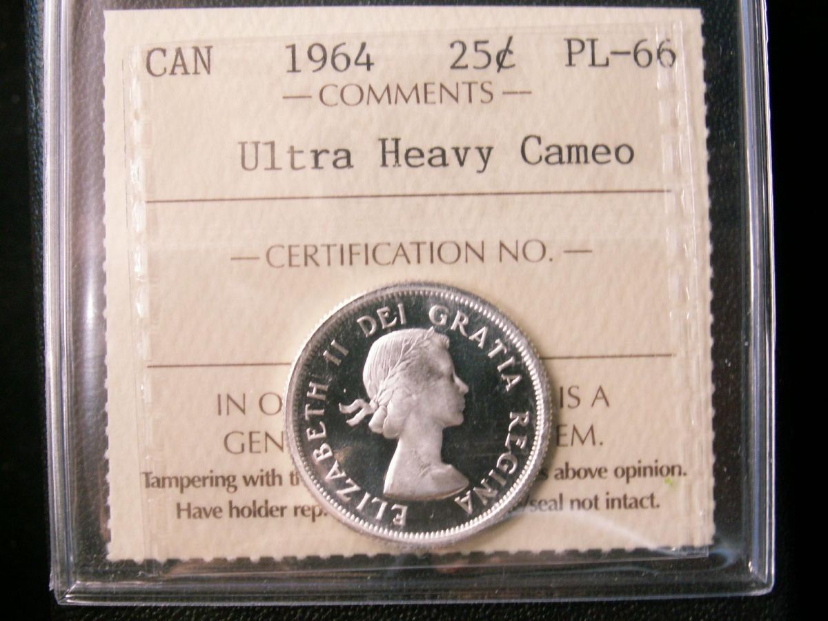1964 25¢ ICCS PL66 ULTRA HEAVY CAMEO. Solo highest graded.