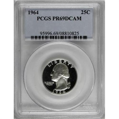 <B>1964 25C PR69 Deep Cameo PCGS.</B></I> The richly frosted devices shine and seemingly float above fathomless jet-black fields, on each side of this near-perfect specimen. Fully struck and exquisitely preserved. Population: 79 in 69 Deep Cameo, 0 finer (8/07). <BR><BR><b>Shipping:</b> Coins & Currency (<a target="_blank" href="http://www.heritageauctions.com/common/shipping.php">view shipping information</a>)