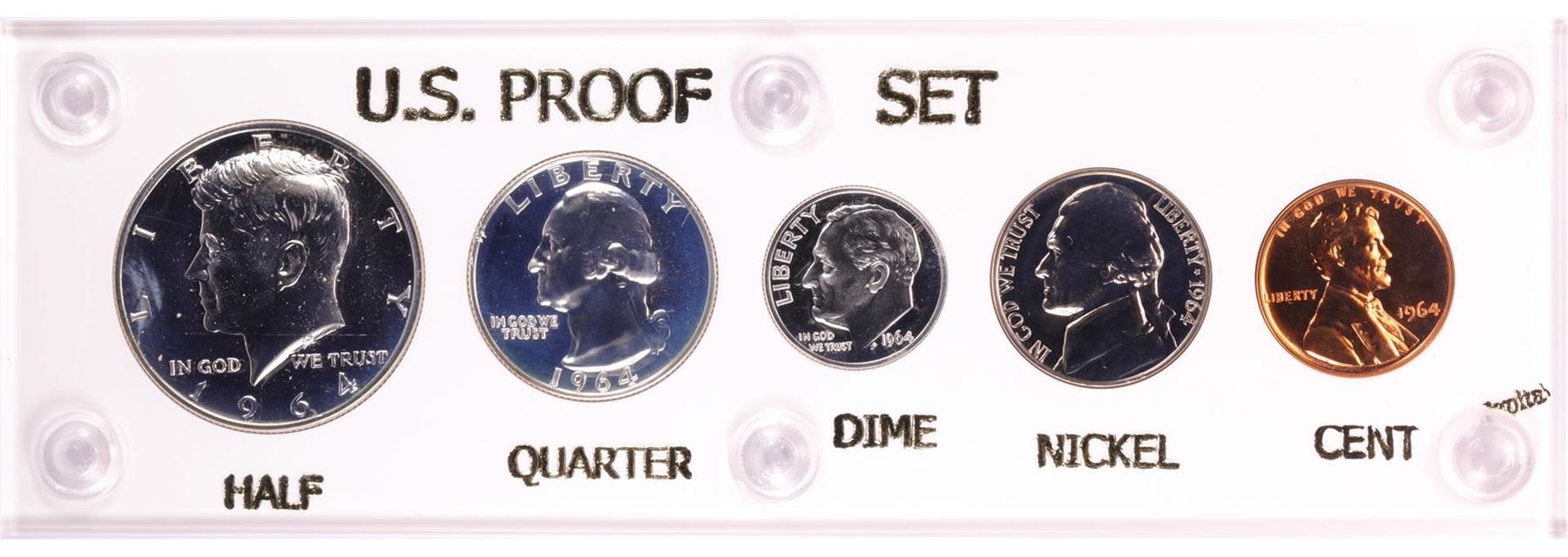 One 1964 (5) Coin Proof Set Accented Hair Kennedy.