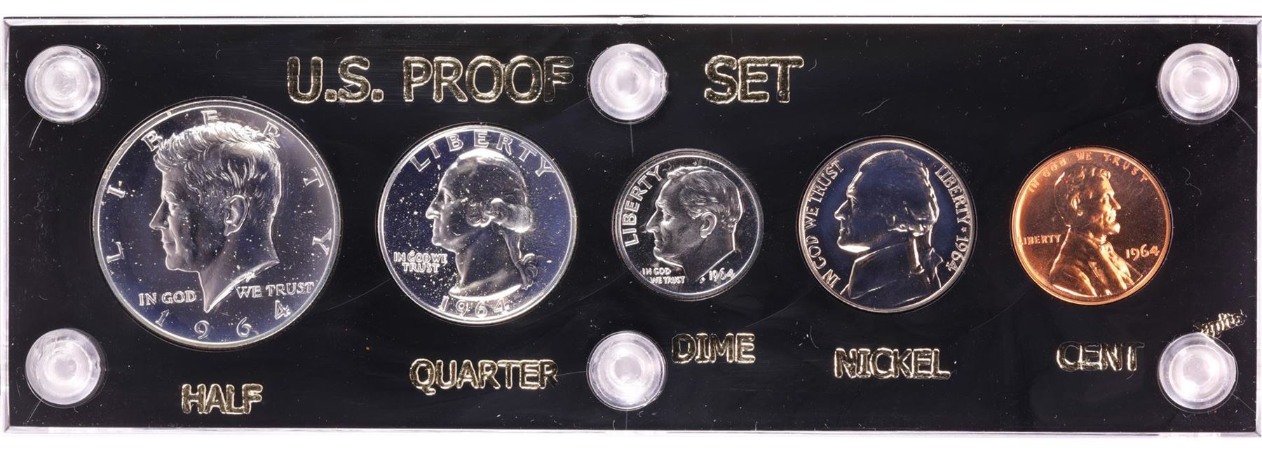 One 1964 (5) Coin Proof Set Accented Hair Kennedy.