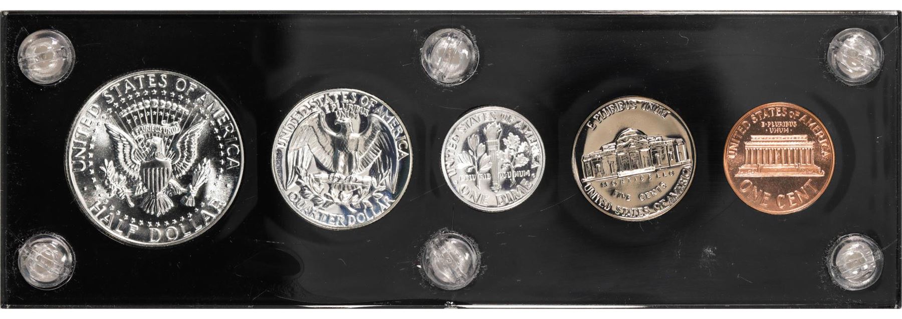 One 1964 (5) Coin Proof Set w/ Accented Hair Half Dollar.