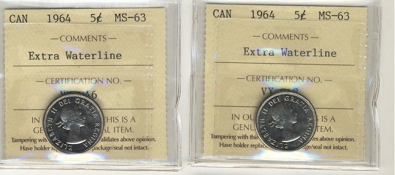 1964 5¢ EWL ICCS MS63. Lot of 2 coins.