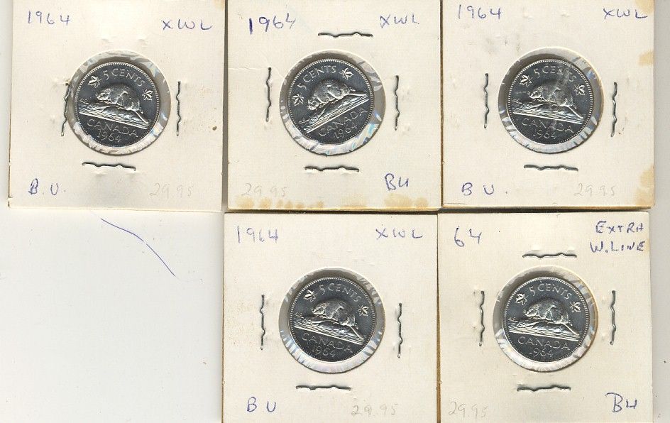 1964 5¢ EWL. Lot of 5 UNC to MS examples.