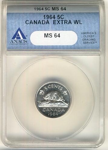 1964 5¢ XWL ANACS MS64.