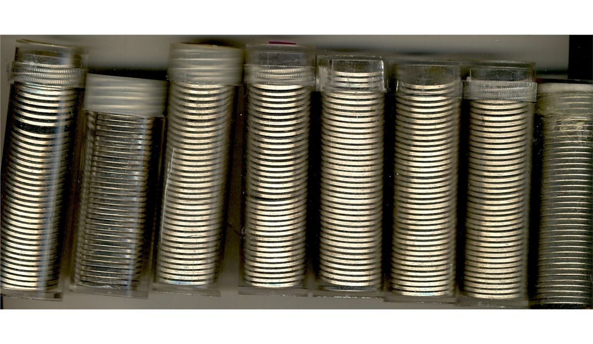 1964 5¢ to 1967 BU Roll Date Set. Includes two of each date in tubes. 8 rolls.