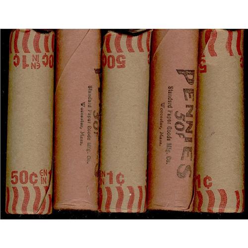 1964 5 x BU Roll 1¢.  Lot of 250 unpicked full red cent