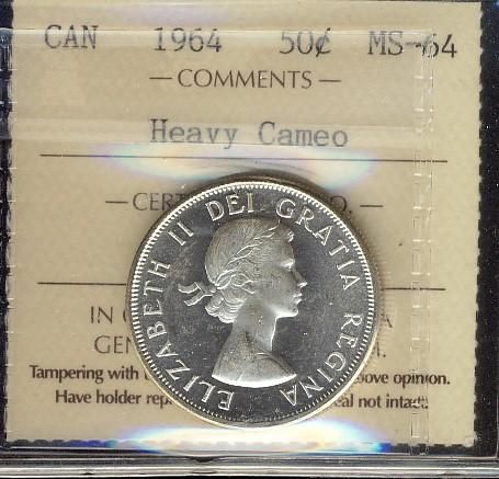 1964 50¢ ICCS MS64 Heavy Cameo.