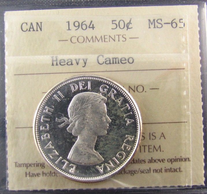 1964 50¢ ICCS MS65 Heavy Cameo.