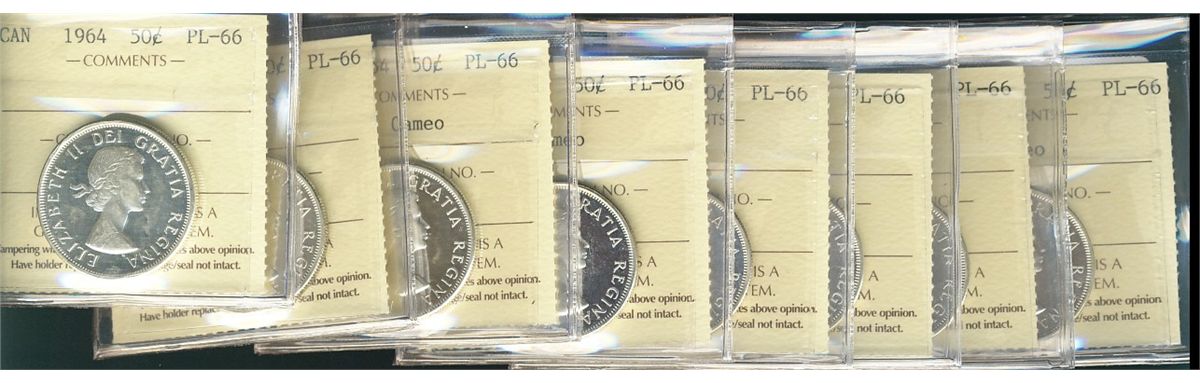 1964 50¢ ICCS PL66 Cameo. Lot of 8 coins.