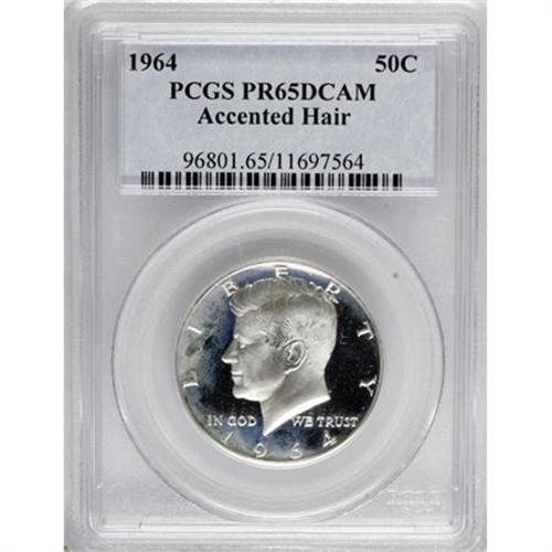 <B>1964 50C Accented Hair PR65 Deep Cameo PCGS.</B></I> PCGS Population (17/40). NGC Census: (9/27). Numismedia Wsl. Price for NGC/PCGS coin in PR65: $400. (#96801)<BR><BR><b>Shipping:</b> Coins & Currency (<a target="_blank" href="http://www.heritageauctions.com/common/shipping.php">view shipping information</a>)