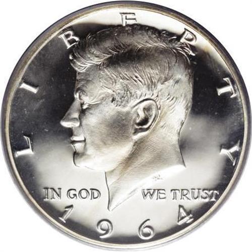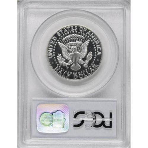 <B>1964 50C Accented Hair PR68 Deep Cameo PCGS.</B></I> A marvelous example of this first-year variety, one that was issued early in the year before the new Kennedy half design was modified to deemphasize the wavy hair below President Kennedy's part. It was rumored that the President's widow, Jacqueline Kennedy, disliked the strong detail in the hair. A practiced eye can spot the strong, incisive hair detail that marks the variety with little problem, but the easiest identifier, as noted in <I>Cherrypickers' </B></I>fourth edition, volume two, is the broken bottom-left serif on the I of LIBERTY. Few coins indeed can match the quality of the present silver-white, near-flawless specimen, and the contrast between the inky-black fields and crisply frosted devices is remarkable. PCGS has certified only eight coins in PR68 Deep Cameo, with none finer (10/07).<BR><I>From The Kallenberg #1 PCGS Registry Set Of Proof Half Dollars.</B></I><BR><BR><b>Shipping:</b> Coins & Currency (<a target="_blank" href="http://www.heritageauctions.com/common/shipping.php">view shipping information</a>)