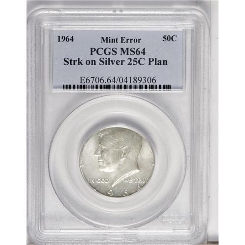 1964 50C Kennedy Half--Struck on a Silver 25C Planchet