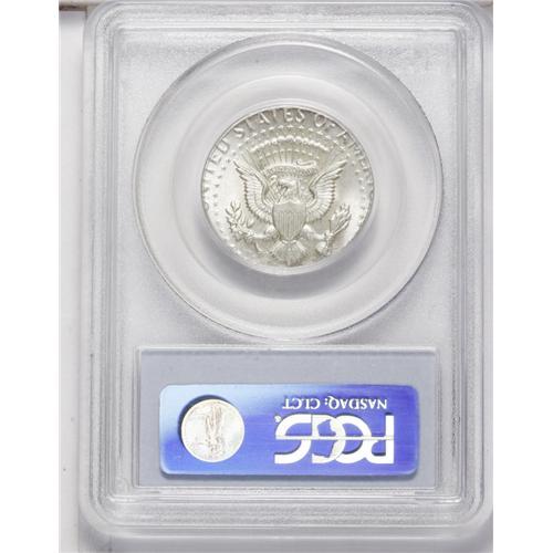 <B>1964<50C> Kennedy Half--Struck on a Silver 25C Planchet--MS64 PCGS.</B></I> Type Two Reverse. Uncentered toward 12 o'clock. Fittingly, HALF DOLLAR is completely off the flan. The date is virtually intact. A satiny and lightly toned near-Gem with a well preserved reverse and a couple of trivial obverse ticks.