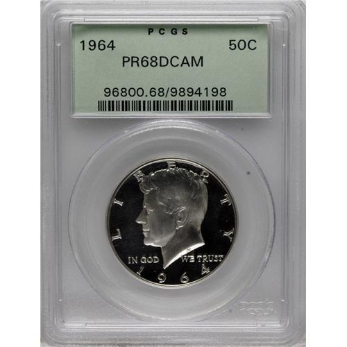 <B>1964 50C PR68 Deep Cameo PCGS.</B></I> PCGS Population (202/69). NGC Census: (506/140). Numismedia Wsl. Price for NGC/PCGS coin in PR68: $200. (#96800)<BR><BR><b>Shipping:</b> Coins & Currency (<a target="_blank" href="http://www.heritageauctions.com/common/shipping.php">view shipping information</a>)
