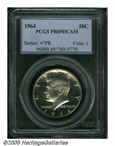 <B>1964<50C> PR69 Deep Cameo PCGS.</B></I> Type Two Reverse. This is a well contrasted specimen with truly superb, unmarked surfaces. Both sides are free of toning, and an excellent strike has impressed the motifs. Population: 65 in 69, 0 finer (4/05).