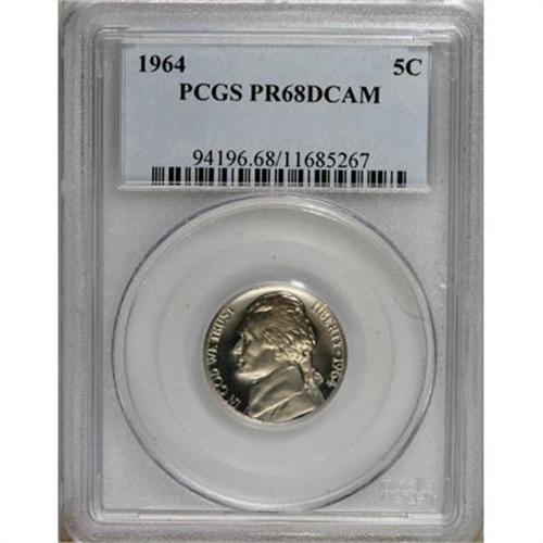 <B>1964 5C PR68 Deep Cameo PCGS.</B></I> PCGS Population (277/173). NGC Census: (108/126). Numismedia Wsl. Price for NGC/PCGS coin in PR68: $44. (#94196)<BR><BR><b>Shipping:</b> Coins & Currency (<a target="_blank" href="http://www.heritageauctions.com/common/shipping.php">view shipping information</a>\)