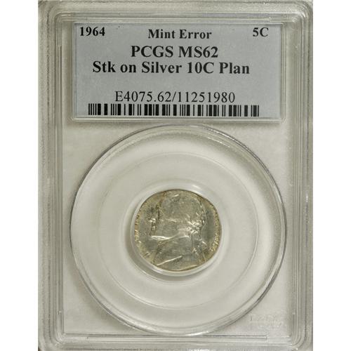 <B>1964 5C Nickel--Struck on Silver 10C Planchet--MS62 PCGS.</B></I><BR><BR><b>Shipping:</b> Coins & Currency (<a target="_blank" href="http://www.heritageauctions.com/common/shipping.php">view shipping information</a>)