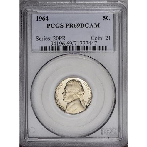 1964 5C PR69 Deep Cameo PCGS. Consistent honey color d 1964[5C] PR69 Deep Cameo PCGS.