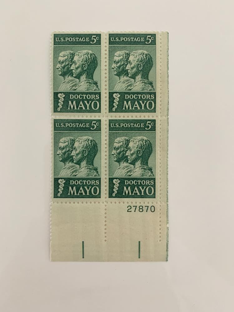 5¢ Doctors Mayo Plate Block of 4 Stamps