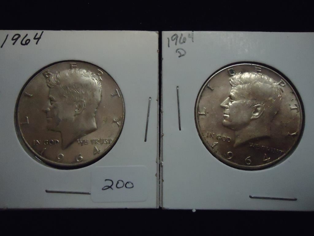 1964 & 64-D 90% SILVER KENNEDY HALF DOLLARS