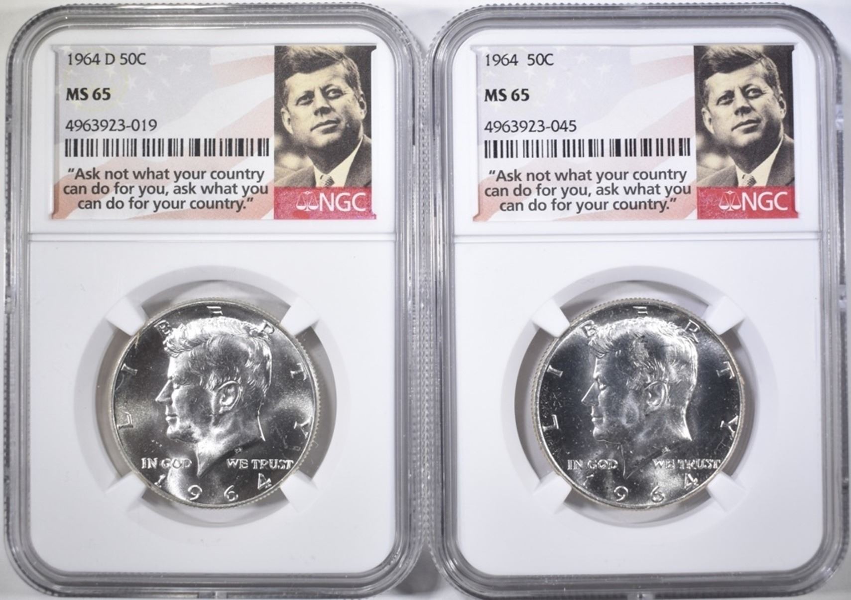 1964 & 64-D KENNEDY HALF DOLLARS, NGC MS-65