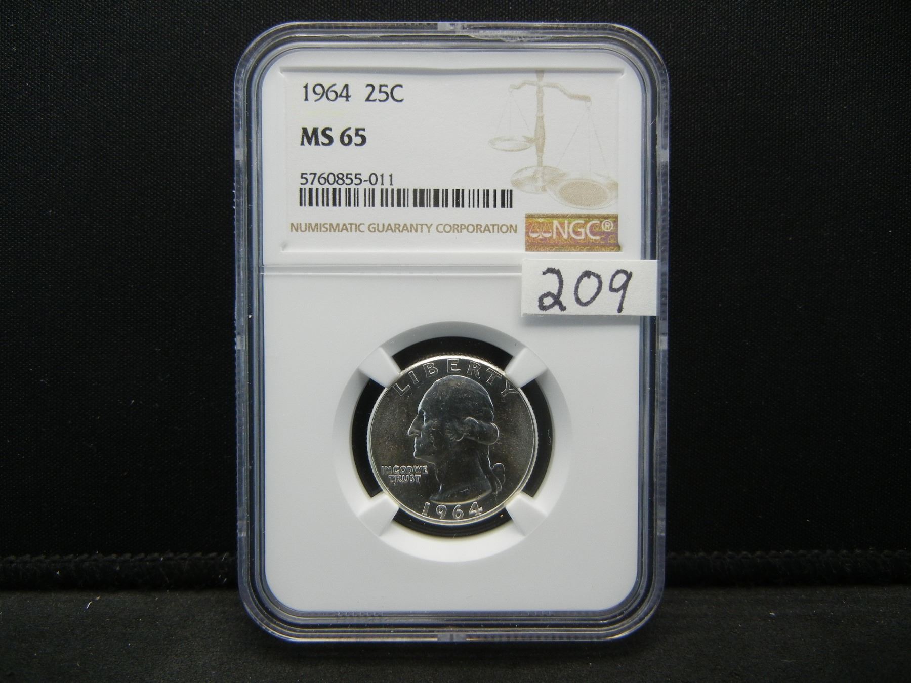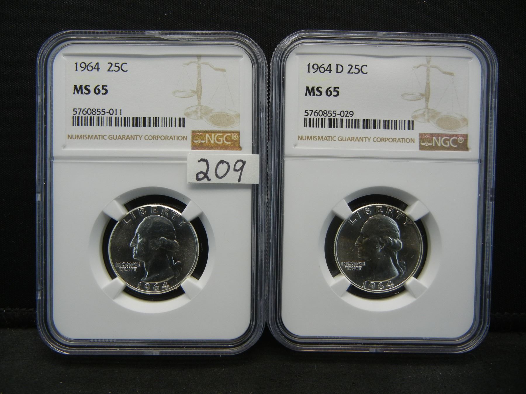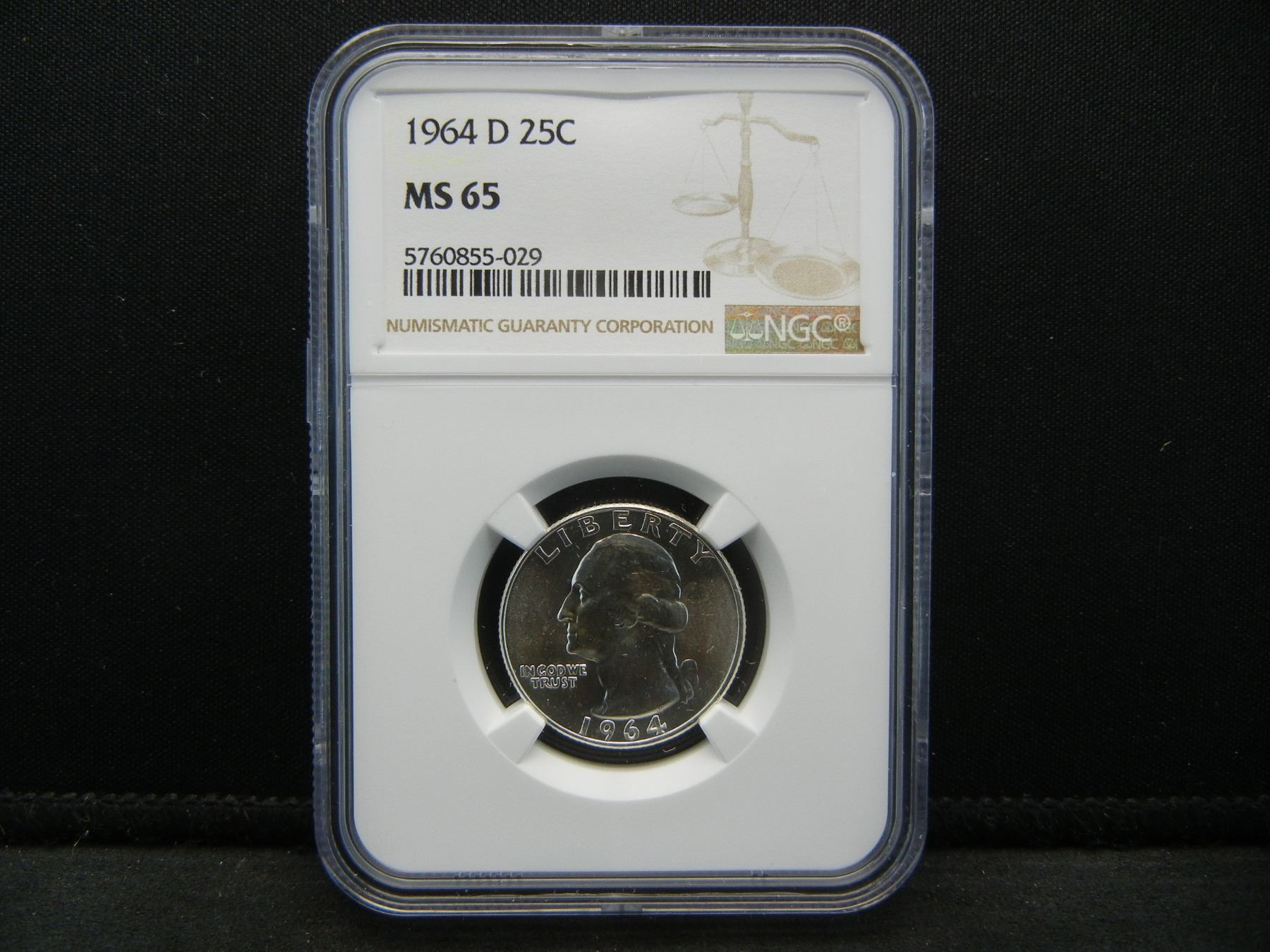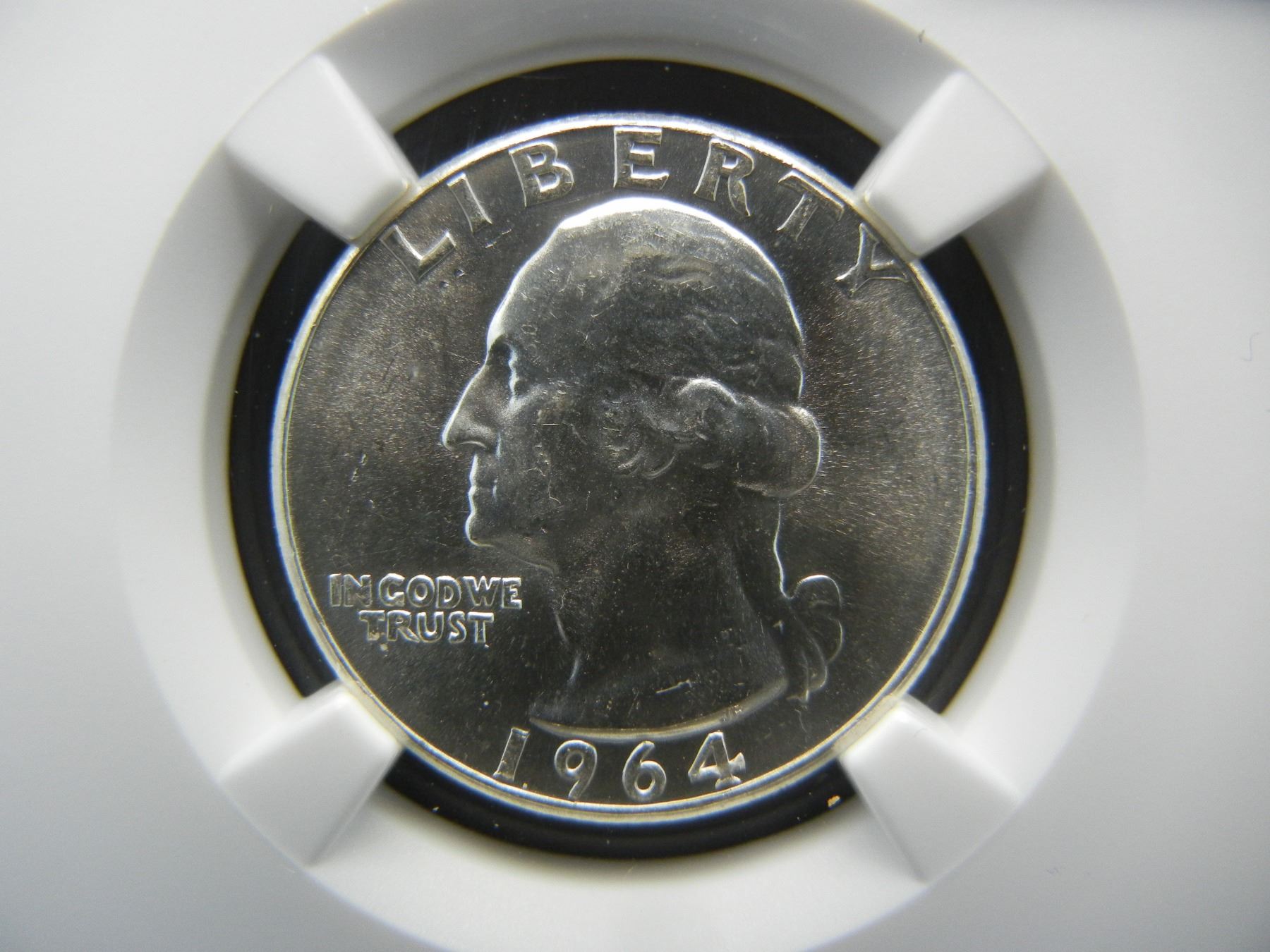 1964+64d Silver Washington Quarters NGC MS65