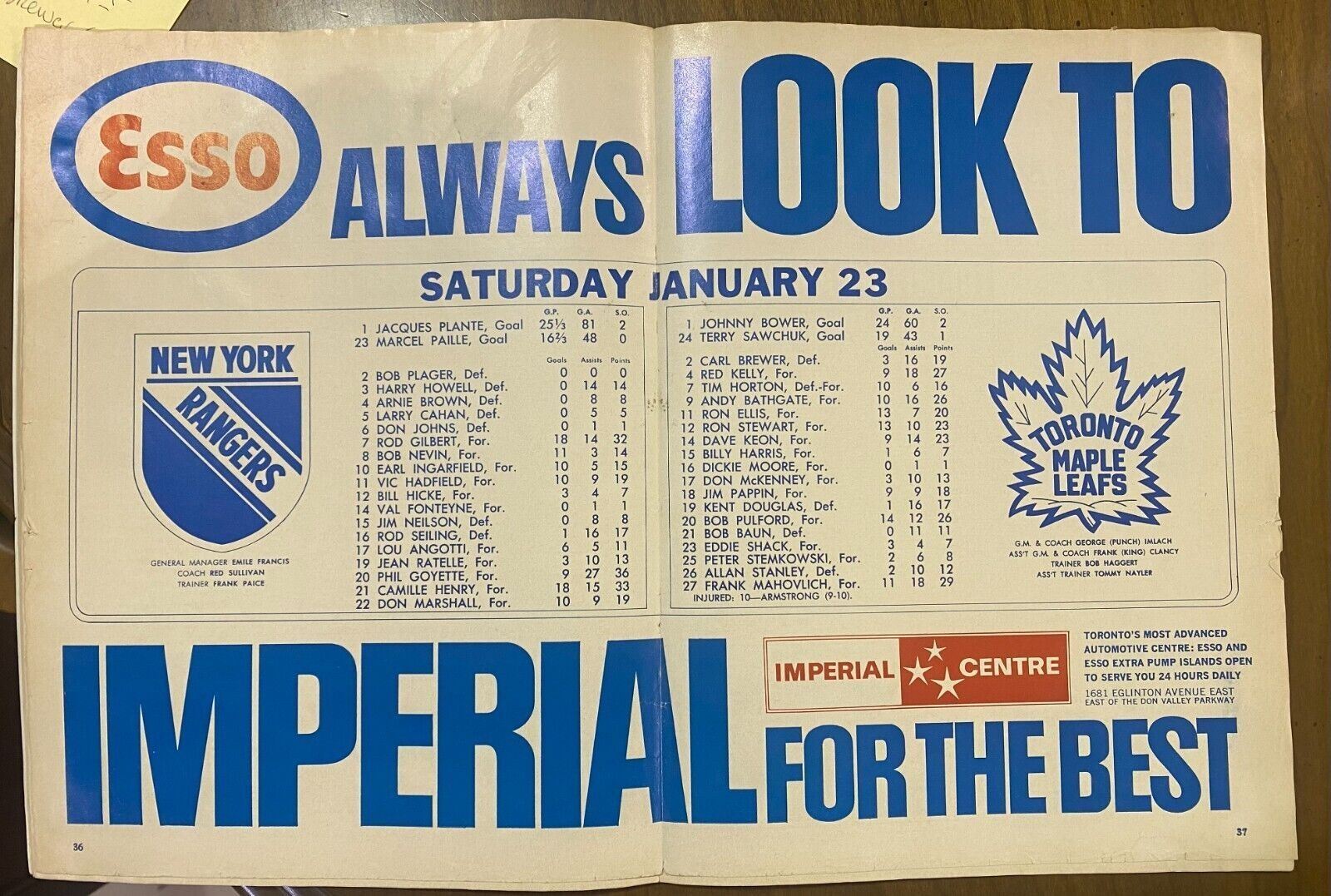 1964-65 Jan 23 Maple Leafs Program Ranger Carl Brewer Cover, Condition- SOLD AS IS (Please see pictures) MAGA-B-2-2B-240725-R-27