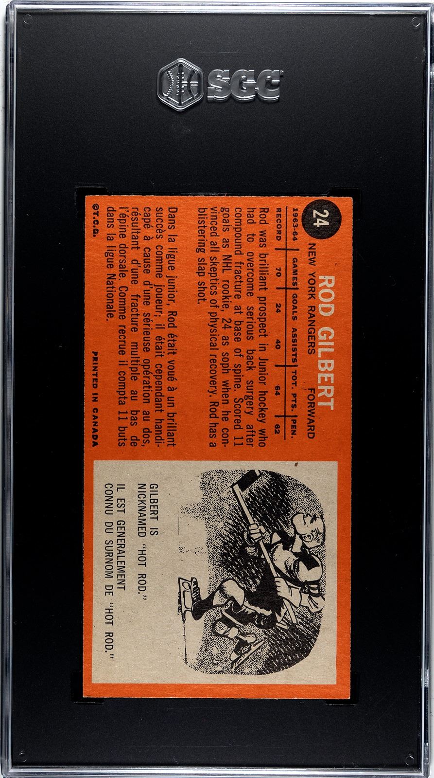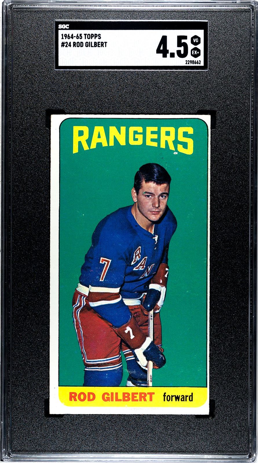 Topps "Tall Boy" featuring NY Rangers HOFer Rod Gilbert, graded an o/c 4.5 VG-EX+ by SGC.