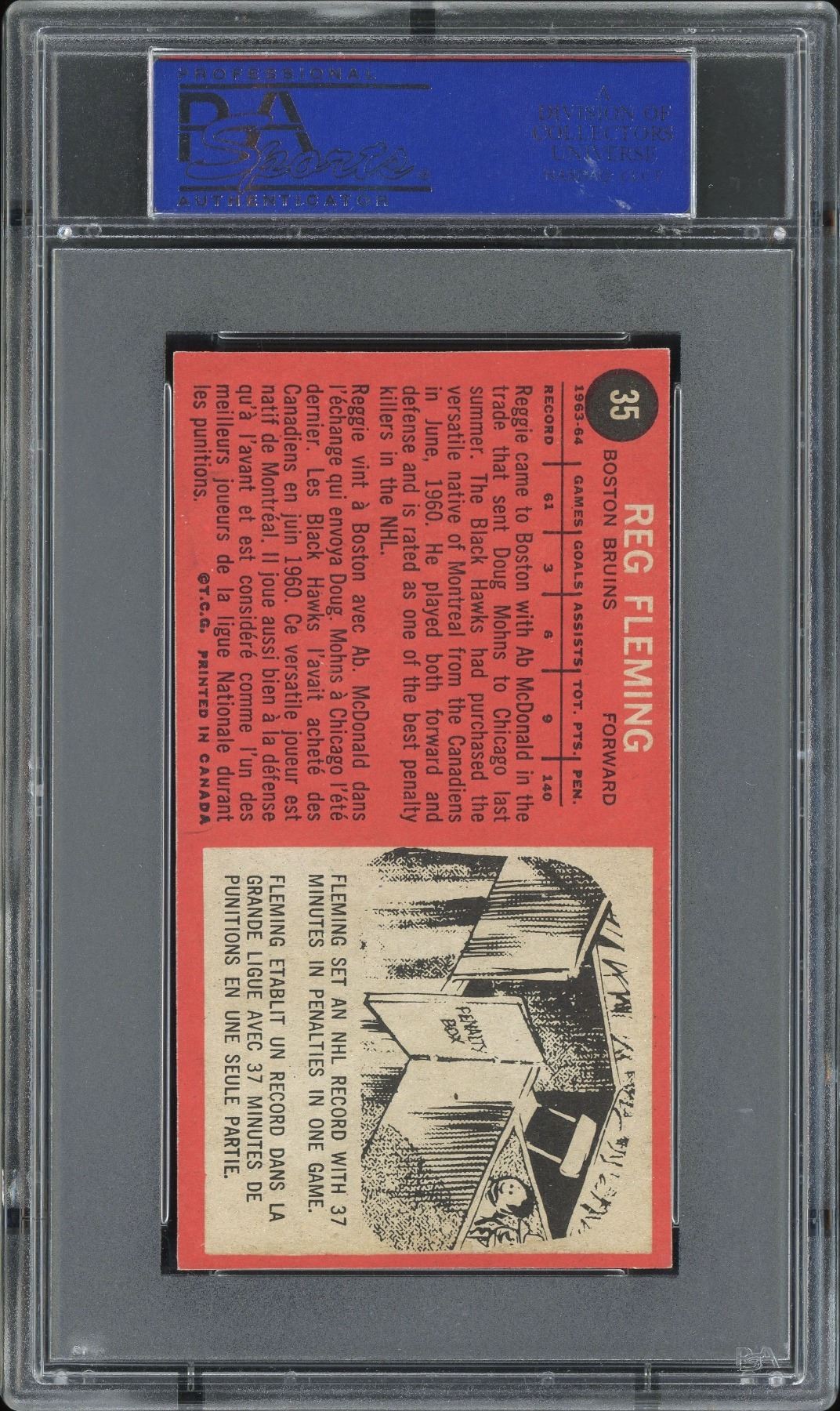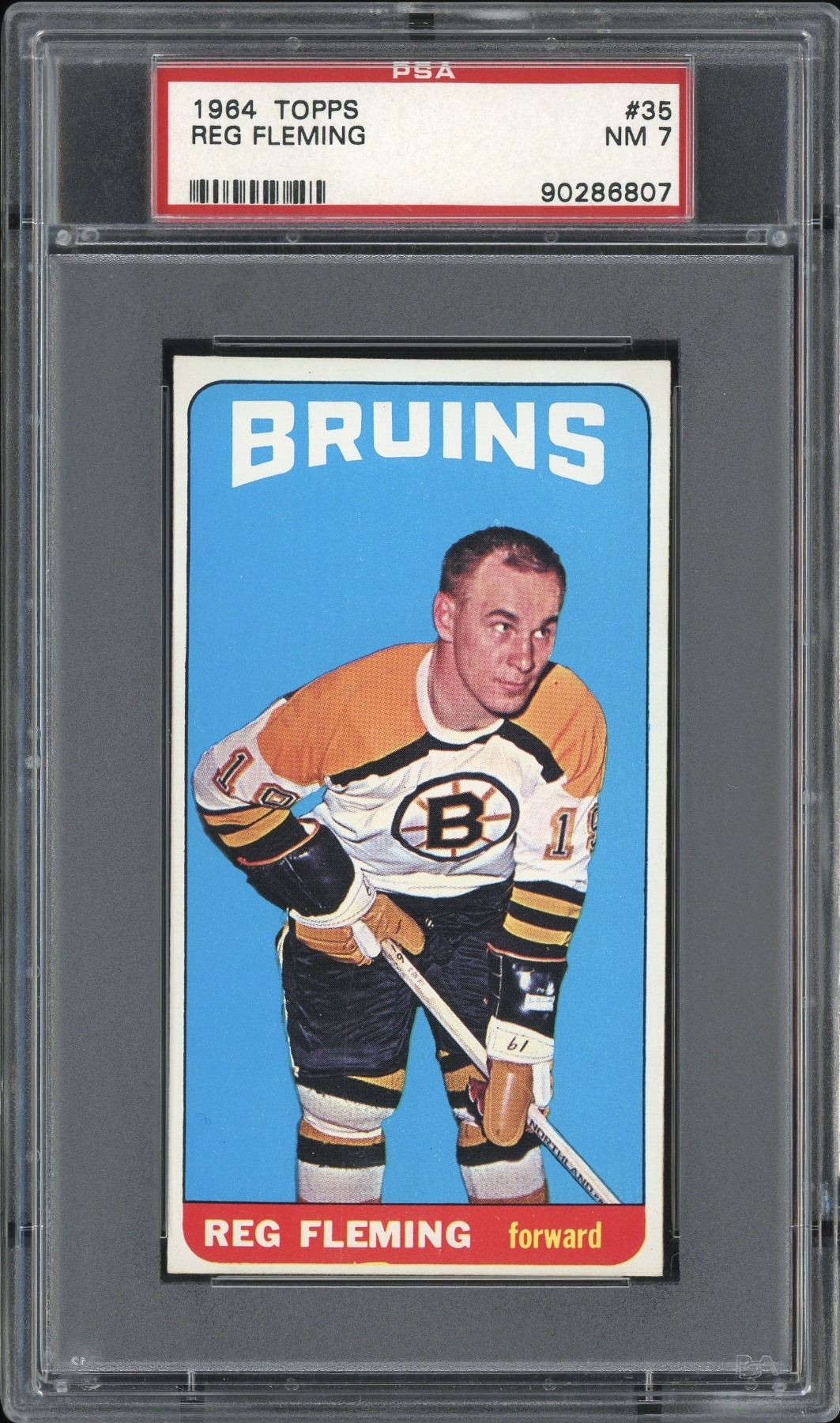 Reggie Fleming was a penalty minute machine, always playing on the edge and getting into numerous fistic encounters over his 12-yr NHL career. Graded a sharp 7 NM by PSA!