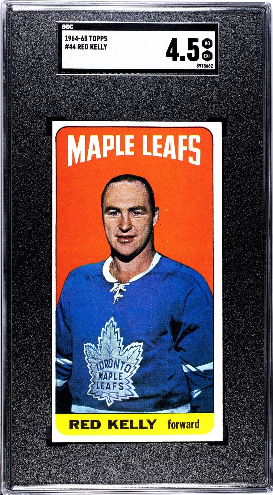 All-time great HOFer, Red Kelly, a 6-time 1st Team All-Star, 4-time Lady Byng winner, Norris Trophy winner, and an 8-time Stanley Cup champ. Graded 4.5 VG-EX+ by SGC.