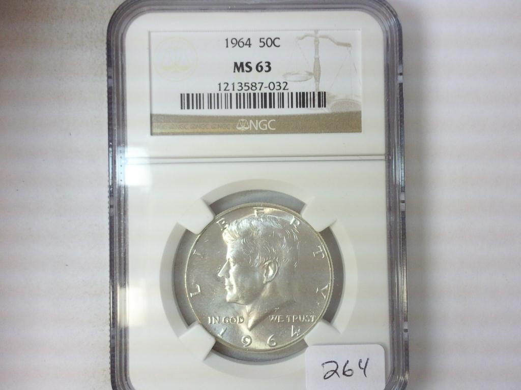 1964 90% KENNEDY HALF DOLLAR NGC MS63