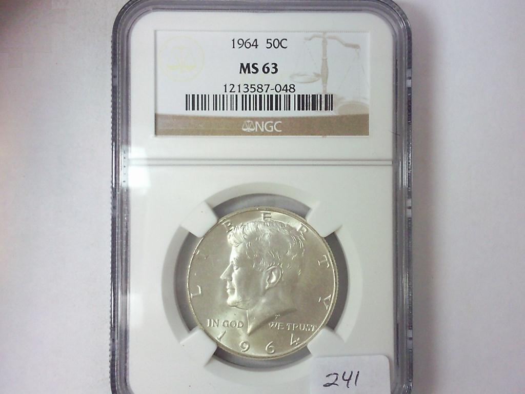 1964 90% SILVER KENNEDY HALF DOLLAR NGC MS63