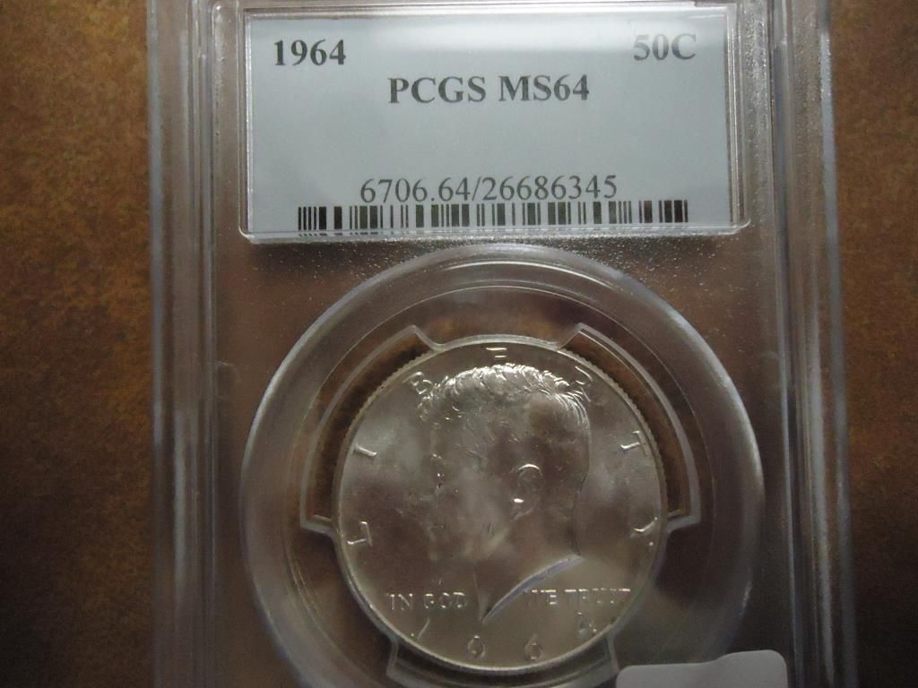 1964 90% SILVER KENNEDY HALF DOLLAR PCGS MS64