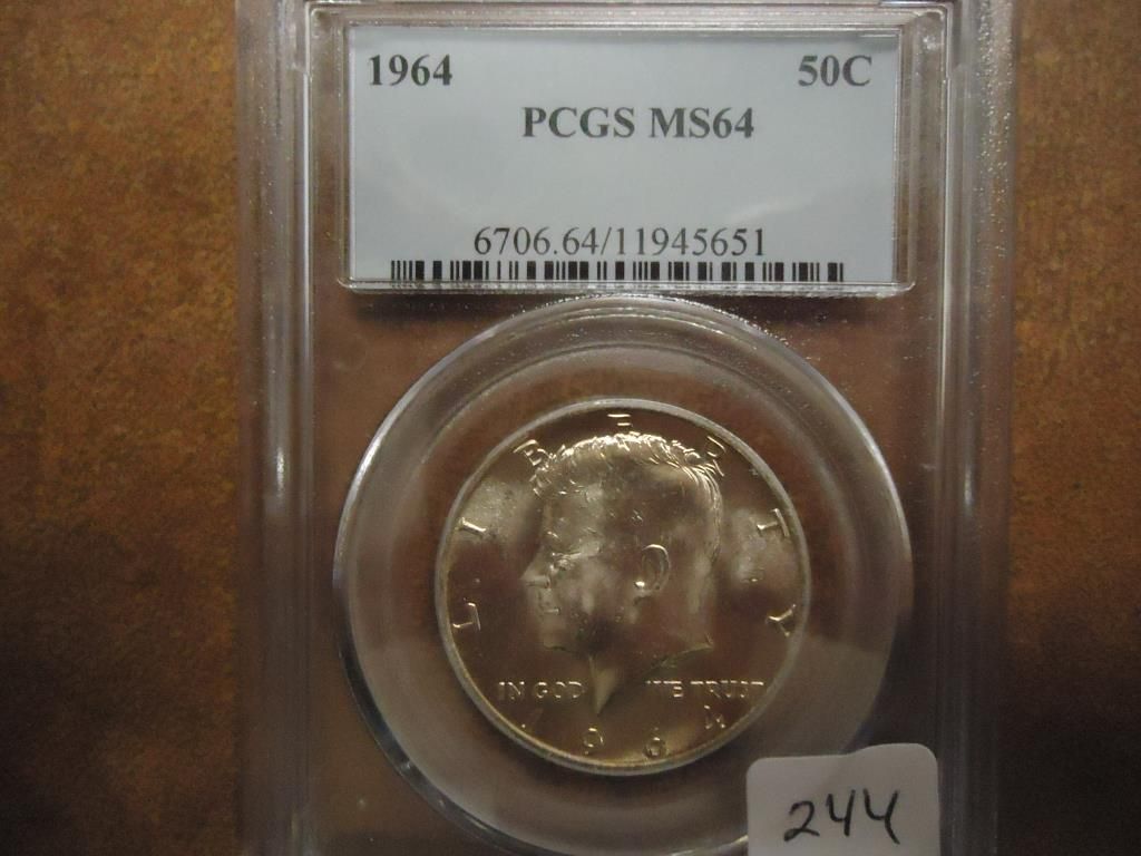 1964 90% SILVER KENNEDY HALF DOLLAR PCGS MS64