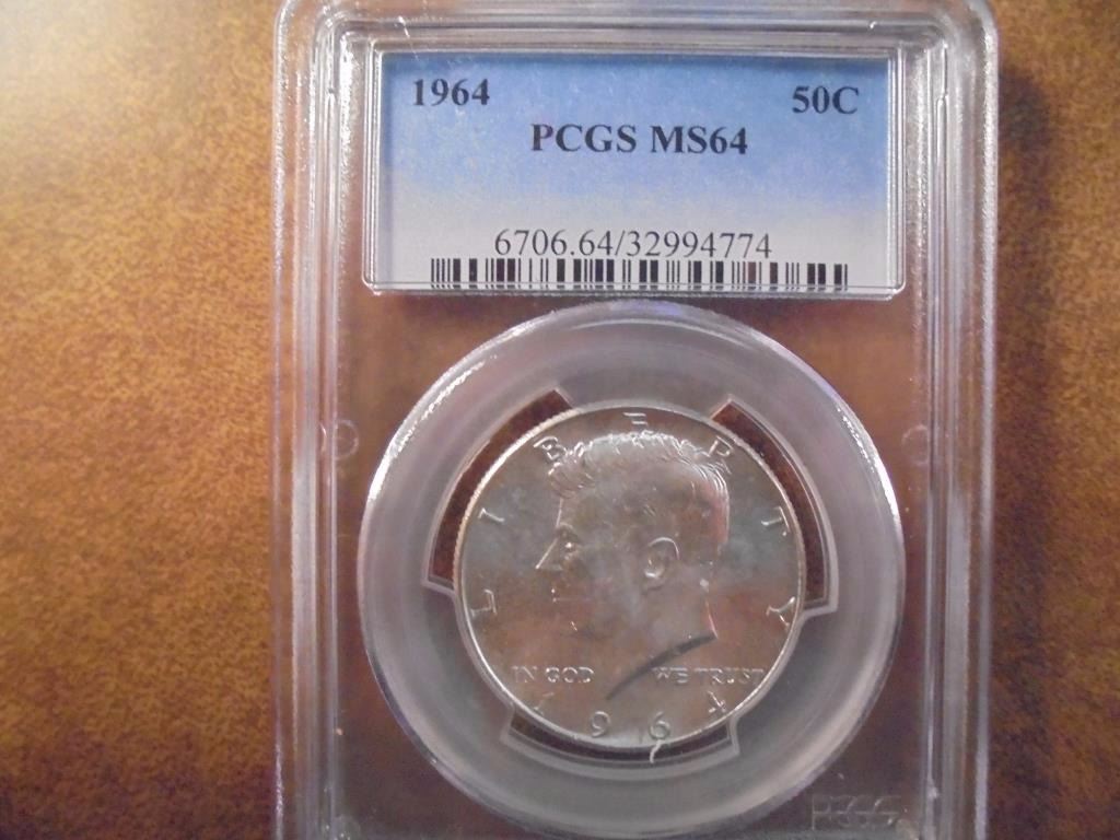 1964 90% SILVER KENNEDY HALF DOLLAR PCGS MS64