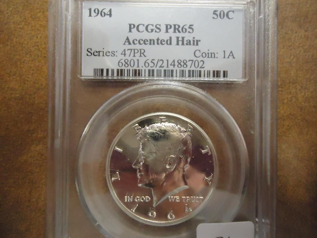 1964 ACCENTED HAIR KENNEDY HALF DOLLAR PCGS PR65