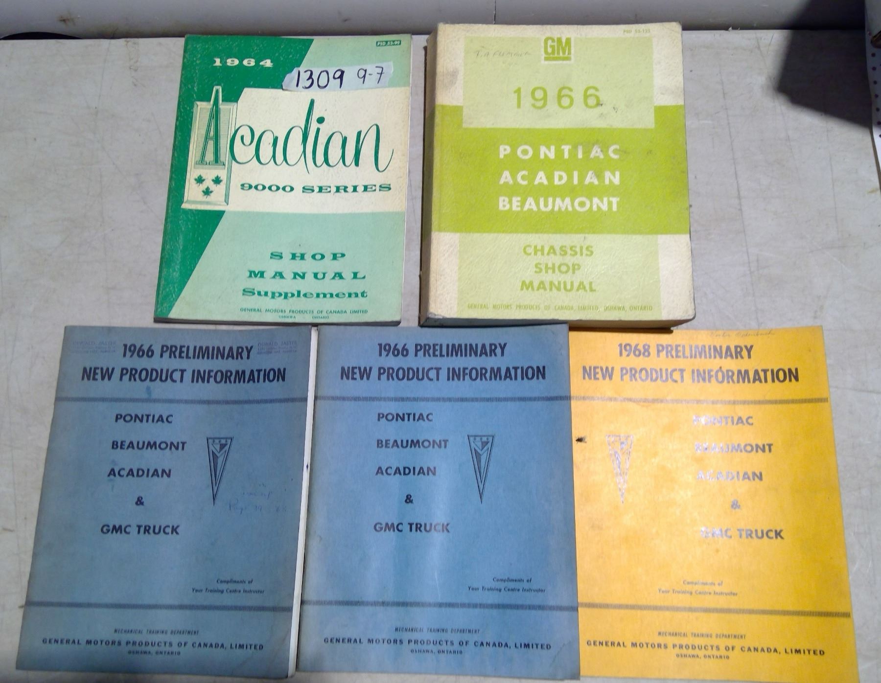 1964 Acadian shop Manual and 1966 Pontiac Chassis Shop Manual and 1968 preliminary New Product Information