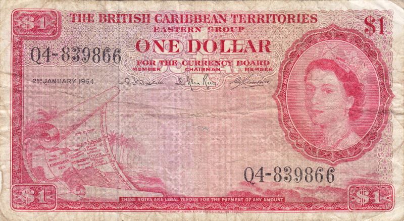 1964 British Caribbean Territories $1 Dollar Bank Note - VF+ Condition