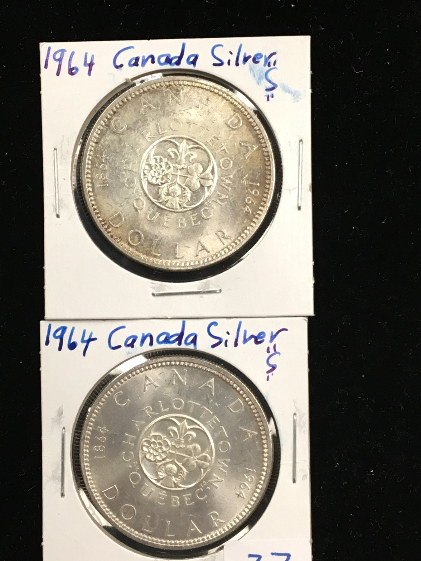 NICE LOT OF 2 1964 CANADA SILVER DOLLARS..AU+