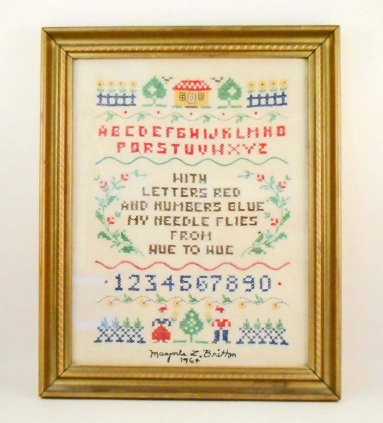 With Letters Red and Numbers Blue, My Needle Flies from Hue to Hue. Approx. 15" by 18.5"