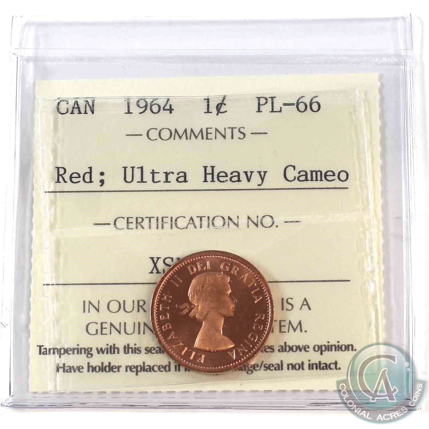 1964 Canada 1-cent ICCS Certified PL-66 Red Ultra Heavy Cameo