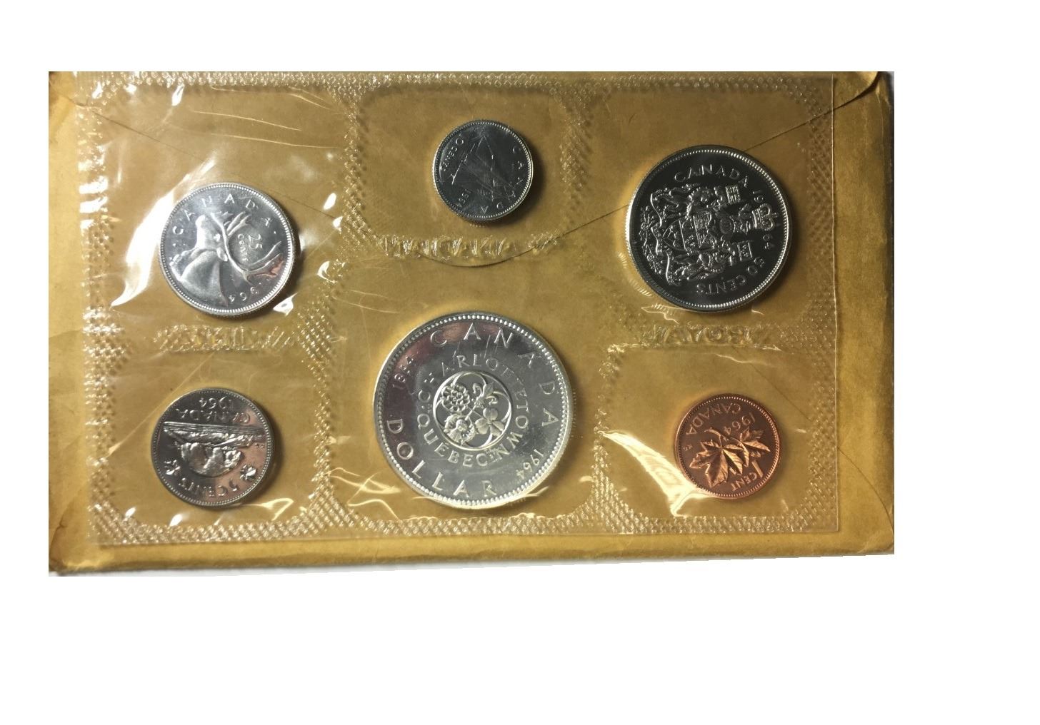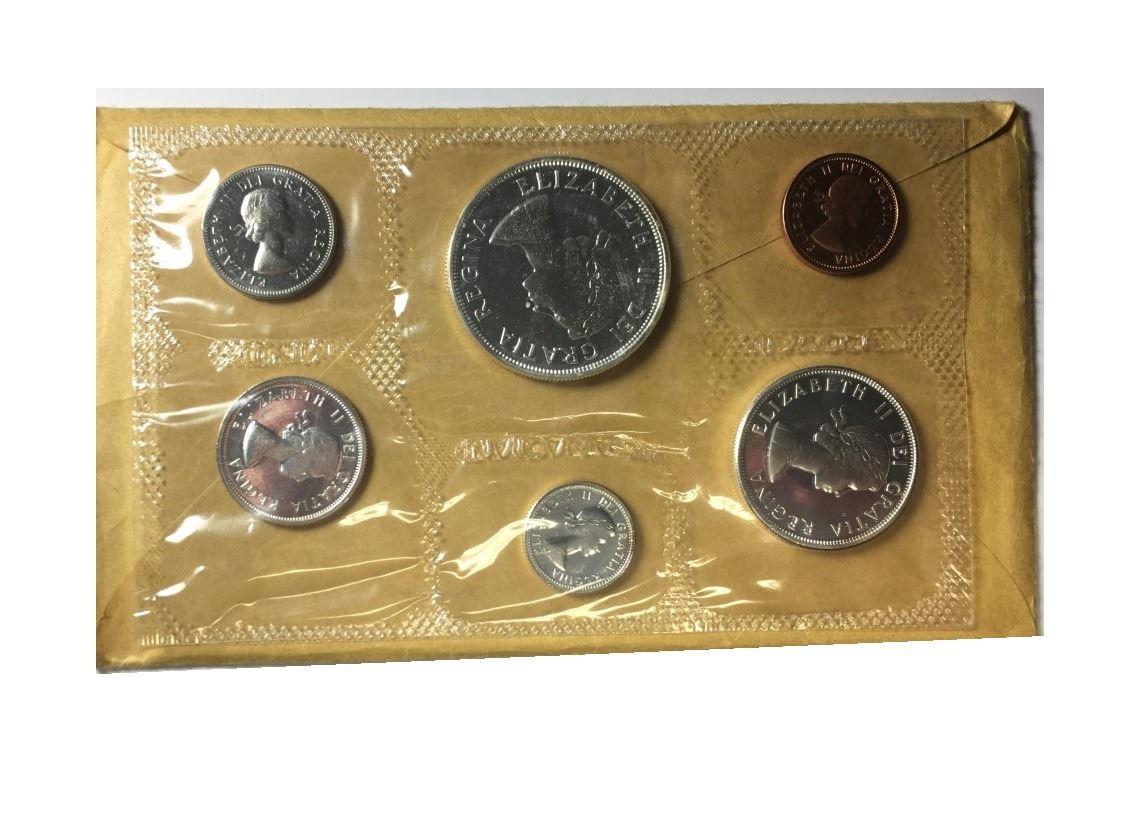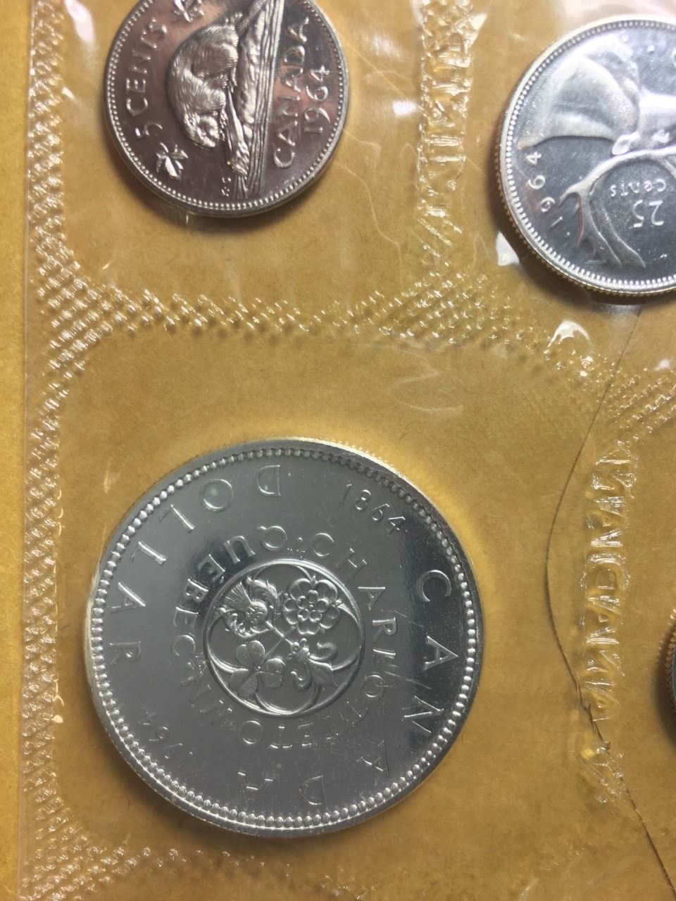 The design depicts, conjoined within a circle, the French fleur-de-lis, the Irish shamrock, the Scottish thistle and the English rose. This 6-coin set is sealed in its original pliofilm transparent plastic, presented in a kraft paper envelope along with bilingual Mint-issued card.